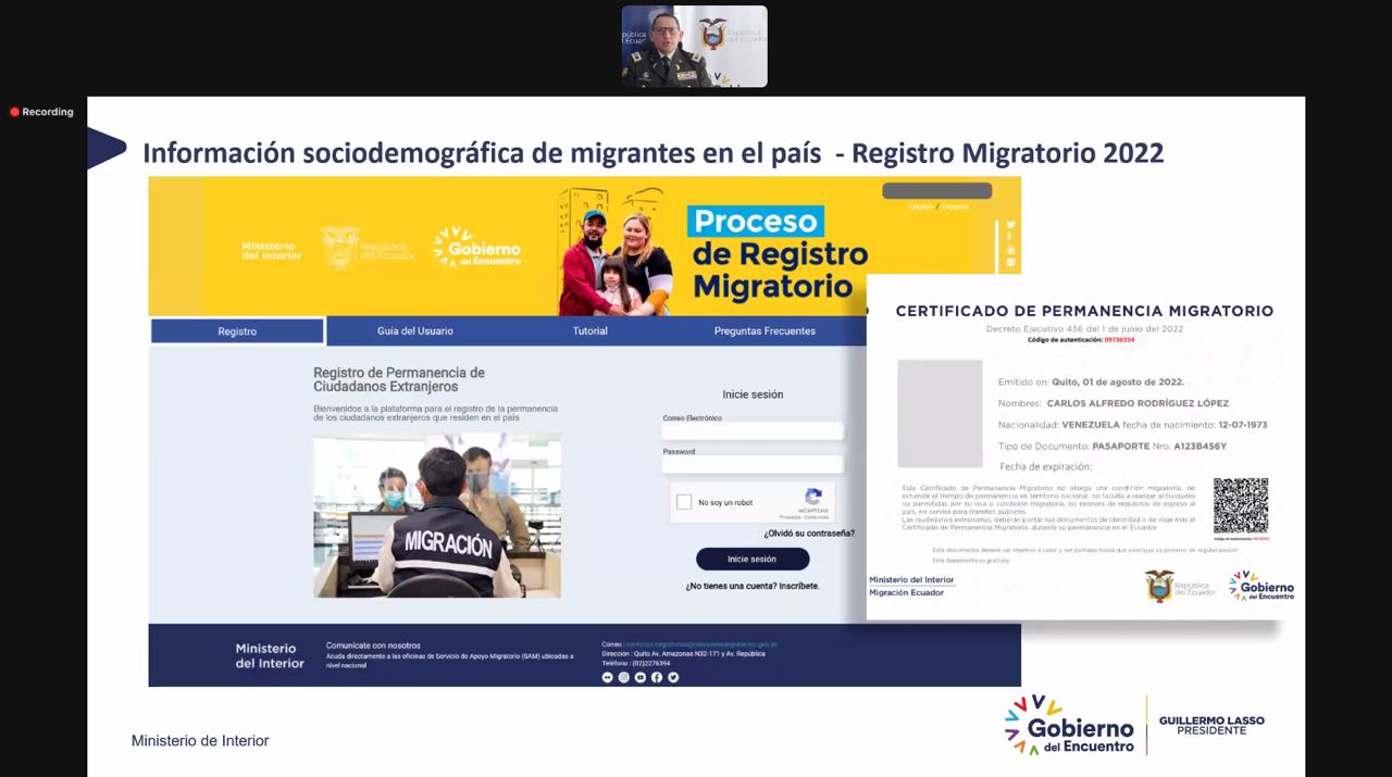 De su parte, Richard Karolys, subsecretario de Migración del Ministerio del Interior, comentó sobre el último proceso de regularización de ciudadanos extranjeros que se lleva adelante en Ecuador, cuyo objetivo es generar políticas públicas en educación, salud y seguridad.