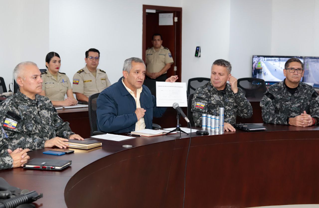 Quito, 24 de junio del 2022.- Esta tarde, el ministro Patricio Carrillo aclaró que la Policía Nacional y las Fuerzas Armadas se mantendrán firmes en la defensa de la democracia y el orden constituido en el Ecuador, pero que frente a los métodos extremadamente violentos que están aplicando grupos criminales, que se mimetizan en las protestas por el paro indígena, como institución están analizando la posibilidad de aplicar el uso progresivo de la fuerza, que incluiría la utilización de carabinas de munición múltiple.
