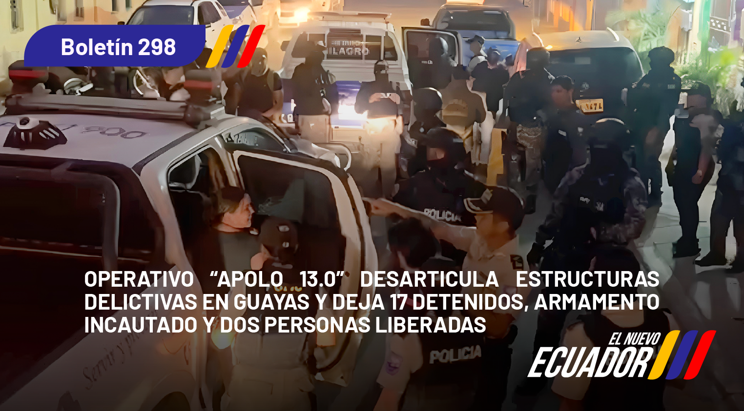 OPERATIVO “APOLO 13.0” DESARTICULA ESTRUCTURAS DELICTIVAS EN GUAYAS Y DEJA 17 DETENIDOS, ARMAMENTO INCAUTADO Y DOS PERSONAS LIBERADAS