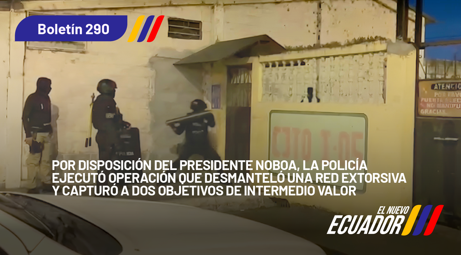 POR DISPOSICIÓN DEL PRESIDENTE NOBOA, LA POLICÍA EJECUTÓ OPERACIÓN QUE DESMANTELÓ UNA RED EXTORSIVA Y CAPTURÓ A DOS OBJETIVOS DE INTERMEDIO VALOR